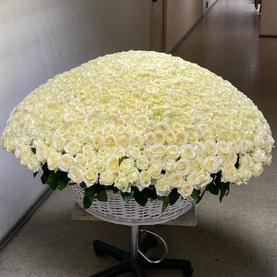 1001 белая роза в корзине «Чистота» в Алексеевке